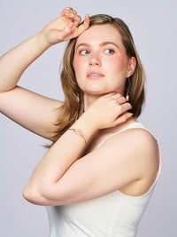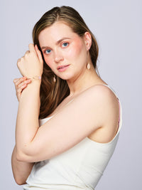 Crafted with natural rose quartz — the stone of self-love, compassion, friendship, and joy — this delicate duo is a modern take on boho elegance. Feminine, chic, and full of meaning, each piece is set in 18k gold-plated metal that adds just the right glow.