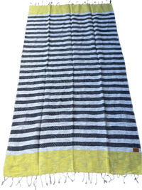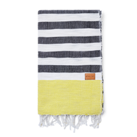 Hand-woven from natural cotton and finished with soft tassels, this oversized towel features a timeless pinstripe design in a zesty citrus hue that's fresh, bright, and just a little bit extra.