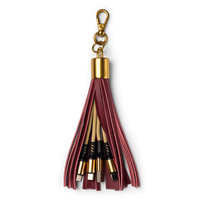 Simply unclip the tassel from your keys or bag, unwind the leather fringe, and plug the appropriate connectors into your device and a power source (like a USB port or power bank). When you’re done, wrap it back up for an instant return to its elegant, tassel form.