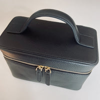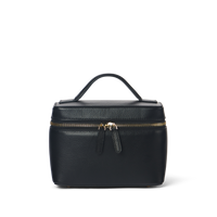 Introducing our Mon Leather Makeup Case — a luxurious piece crafted from 100% genuine top grain pebble leather. Designed with a film top handle and gold-coloured hardware, it combines timeless beauty with everyday practicality. Inside, a fabric-lined interior, two side panels, and a zip compartment keep your essentials perfectly organized. Finished with gold metal feet for extra durability and refinement.