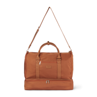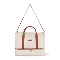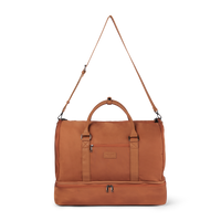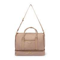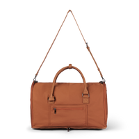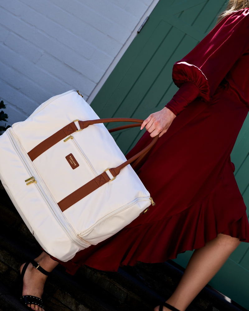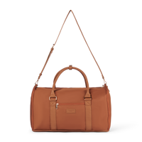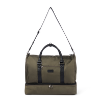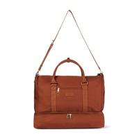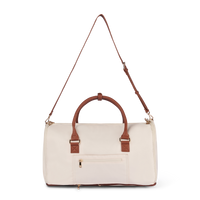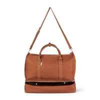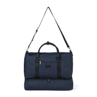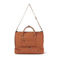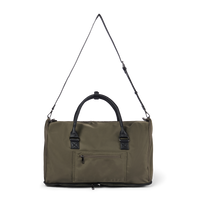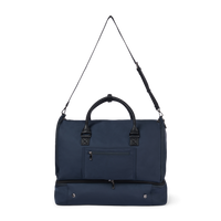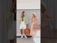 Crafted from recycled nylon with recycled leather handles, it’s water-resistant, durable, and made to last through every getaway and business trip.