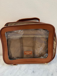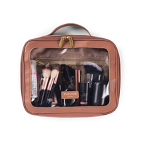 A clear front panel allows you to instantly see what’s inside—no more digging through clutter. Inside, multiple compartments and mesh pockets securely hold your makeup brushes, skincare bottles, and other essentials in place. The sturdy double-zip closure ensures everything stays protected while you’re on the go.